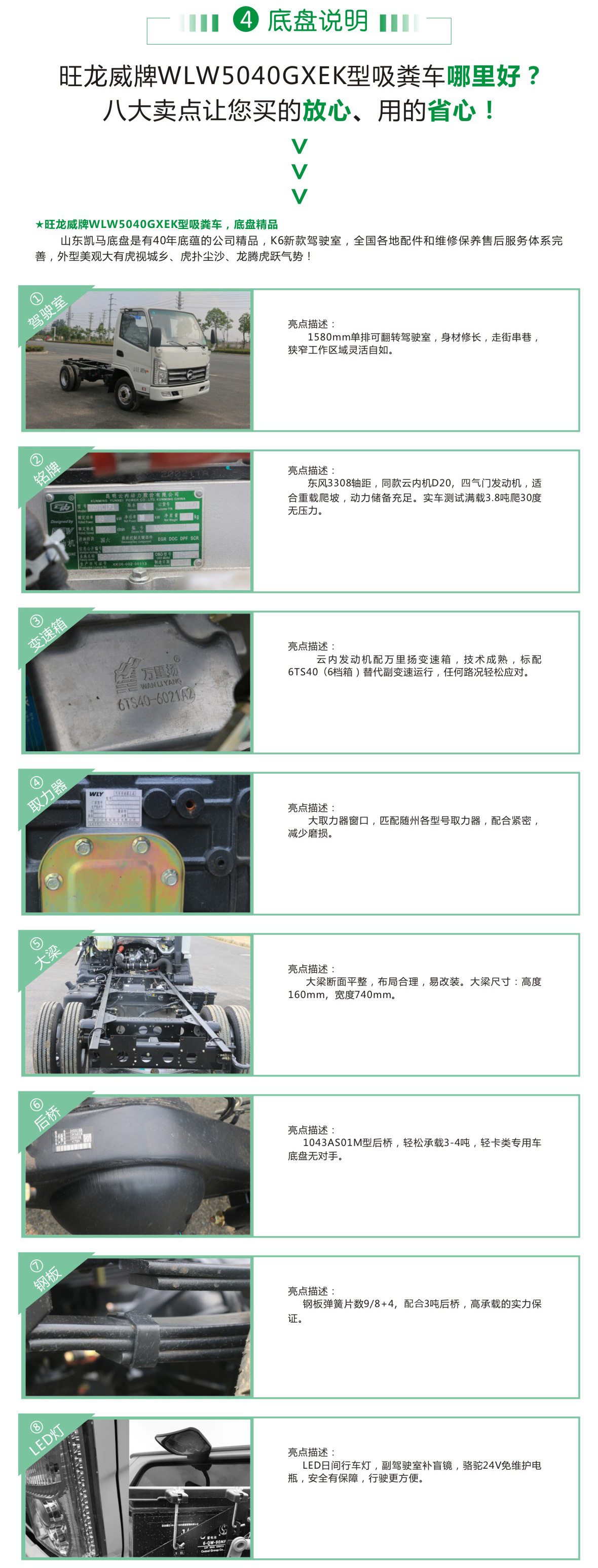 ①底盤:旺龍威牌WLW5040GXEK型吸糞車的發(fā)動機是大馬力發(fā)動機