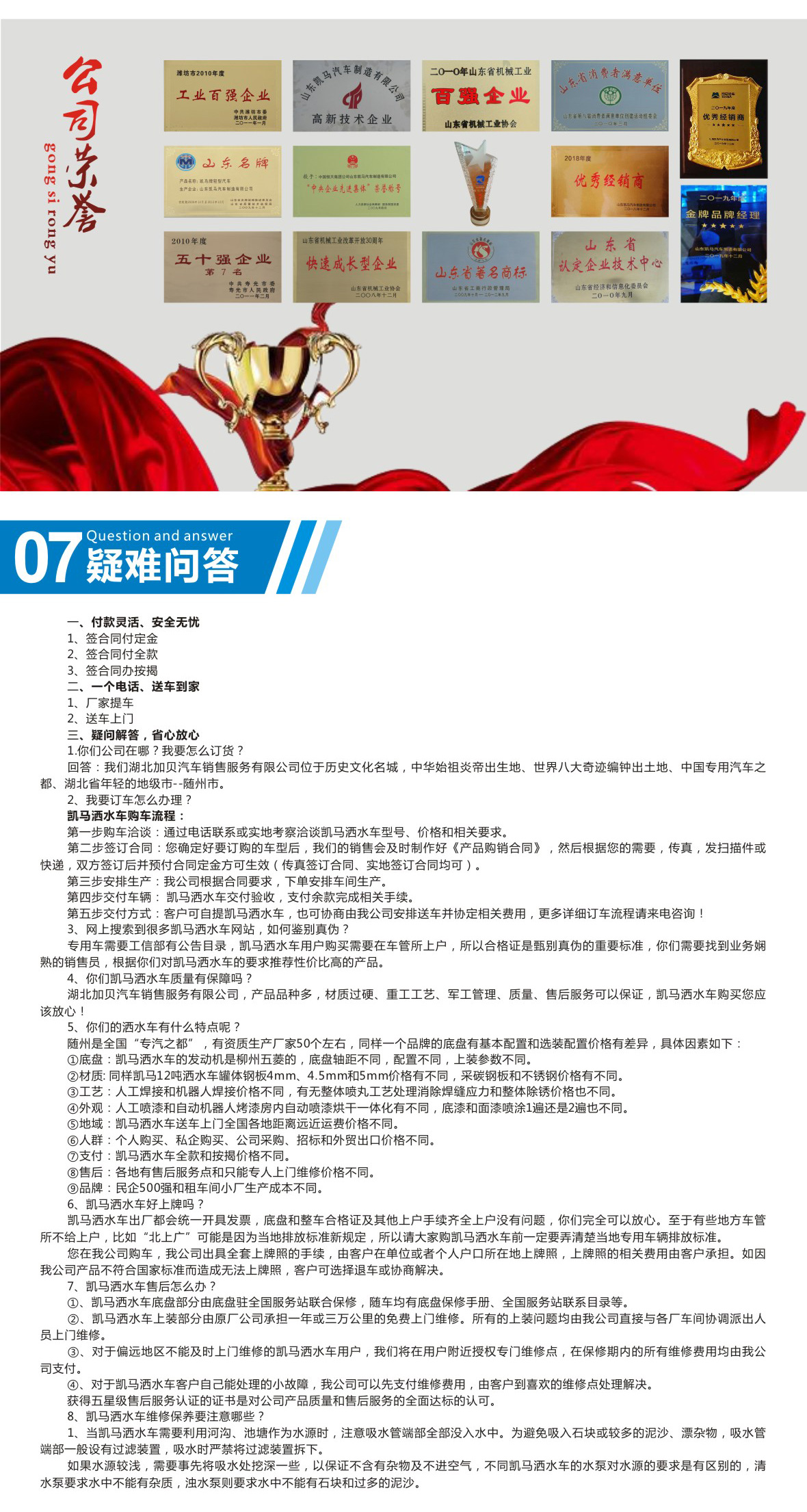 ④、對于旺龍威牌WLW5040GXEK型吸糞車客戶自己能處理的小故障,我公司可以先支付維修費用,由客戶到指定維修點處理解決。獲得五星級售后服務(wù)認證的證書是對公司產(chǎn)品質(zhì)量和售后服務(wù)的全面達標的認可。