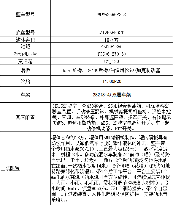 湖北加貝汽車銷售服務有限公司,產品品種多,材質過硬、重工工藝、軍工管理、質量、售后服務可以保證,旺龍威牌WLW5256GPSLZ型綠化噴灑車購買您應該放心!