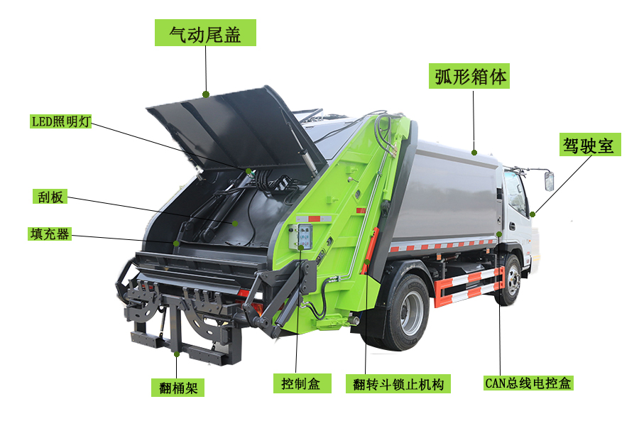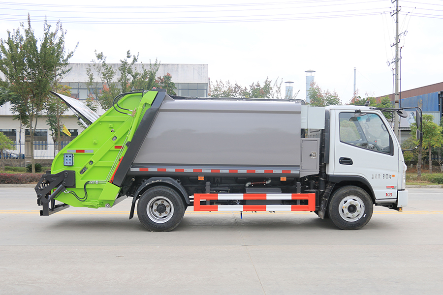 壓縮式垃圾車由密封式垃圾廂、液壓系統、操作系統組成。整車為全密封型,自行壓縮、自行傾倒、壓縮過程中的污水全部進入污水廂,較為徹底的解決了垃圾運輸過程中的二次污染的問題,避免了給人們帶來不便,關鍵部件采用進口部件,具有壓力大、密封性好、操作方便、安全等優點。 可選配后掛桶翻轉機構或垃圾斗翻轉機構。壓縮式垃圾車構成密封式垃圾廂、液壓系統優點壓力大、密封性好、操作方便。