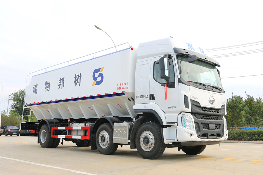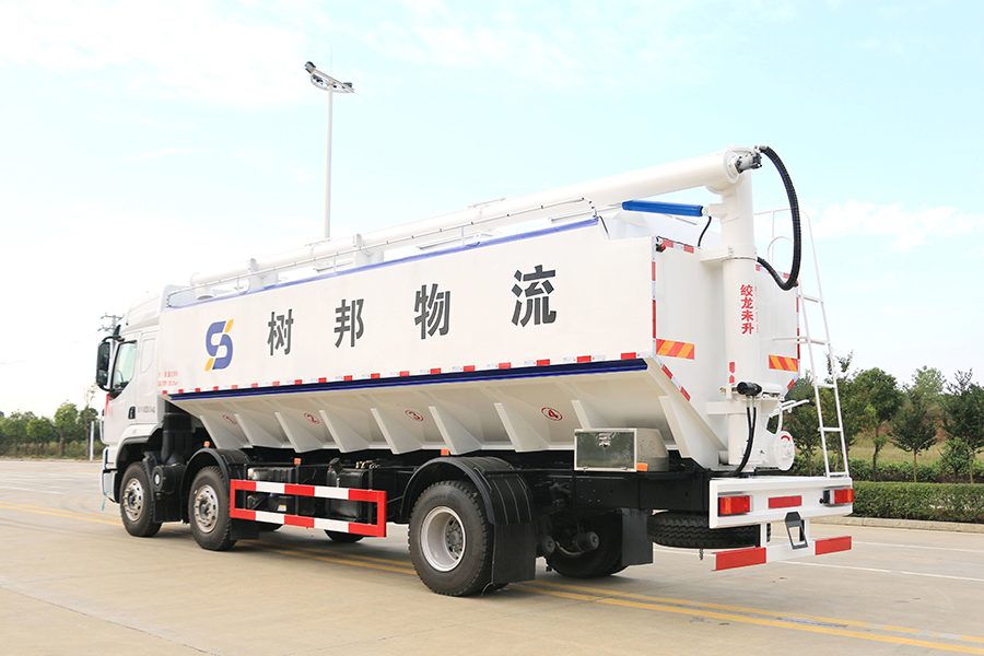 散裝飼料車全稱為散裝飼料運(yùn)輸車。主要用于從飼料廠向畜牧場(chǎng)養(yǎng)禽場(chǎng)及飼料加工用戶或運(yùn)輸散裝飼料成品飼料生產(chǎn)原糧,同時(shí)它也可用來(lái)運(yùn)輸某些無(wú)腐蝕性粉粒狀原料,如制藥廠粉料和糧庫(kù)周轉(zhuǎn)。