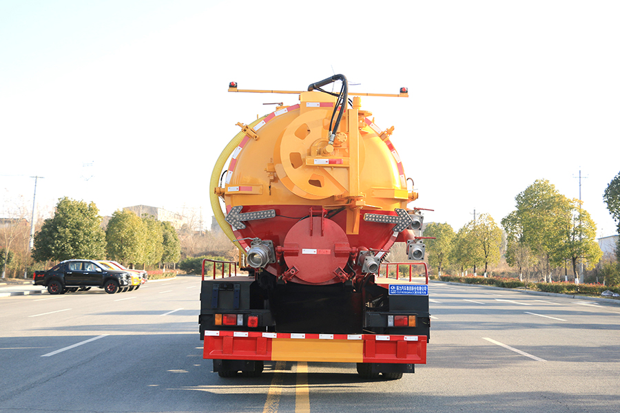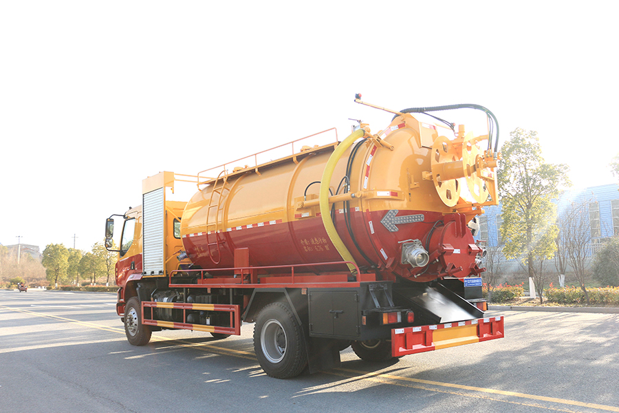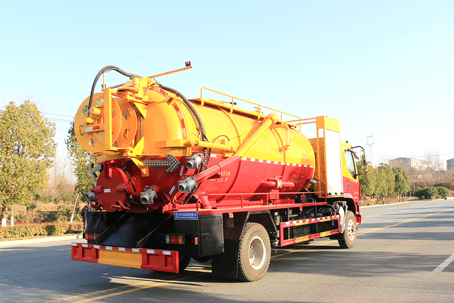 吸污車專用部分由取力器、傳動軸、真空吸污泵、壓力罐體、液壓部分,管網系統、真空壓力表、視糞窗、洗手裝置等組成,隨車配置大功率真空吸污泵和優質液壓系統,罐體封頭一次壓鑄成型、罐體可后開、雙頂自卸。罐內污物可通過后蓋直接傾倒,具有真空度高(比吸糞車的吸力更大)、噸位大、效率高、用途更廣泛的特點。主要用于清洗城市下水道,管道的沉積物,死角泥溝的疏通,也可用于清洗工業排液管道,壁面等,并可兼作灑水,運水和沖公路用,緊急時可用于救火。