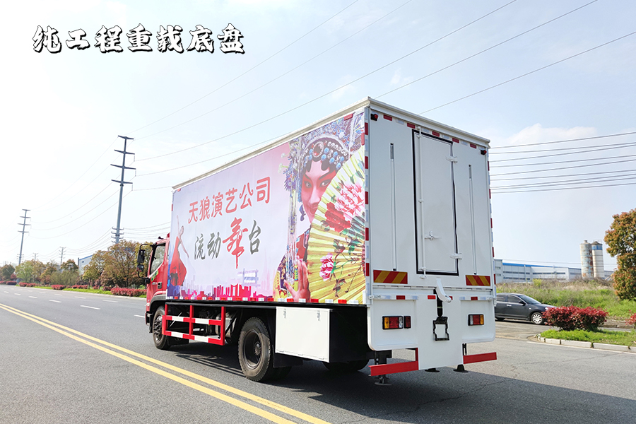 2、運作安全性 率先應用垂直升降專用導向機構,并設置液壓支腿,使頂棚升降安全平穩,車廂及舞臺面穩定平整,帶專業的野外抗風能力設計。