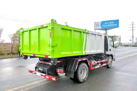 (5) 作業自動化:采用光電開關加時間雙系統控制,帶一鍵卸料,帶無線遙控裝置,全部填裝排卸作業中只需司機一人操作,可設定全自動和半自動 2 種操作模式,不僅減輕環衛工人的勞動強度, 而且大大改善了工作環境。