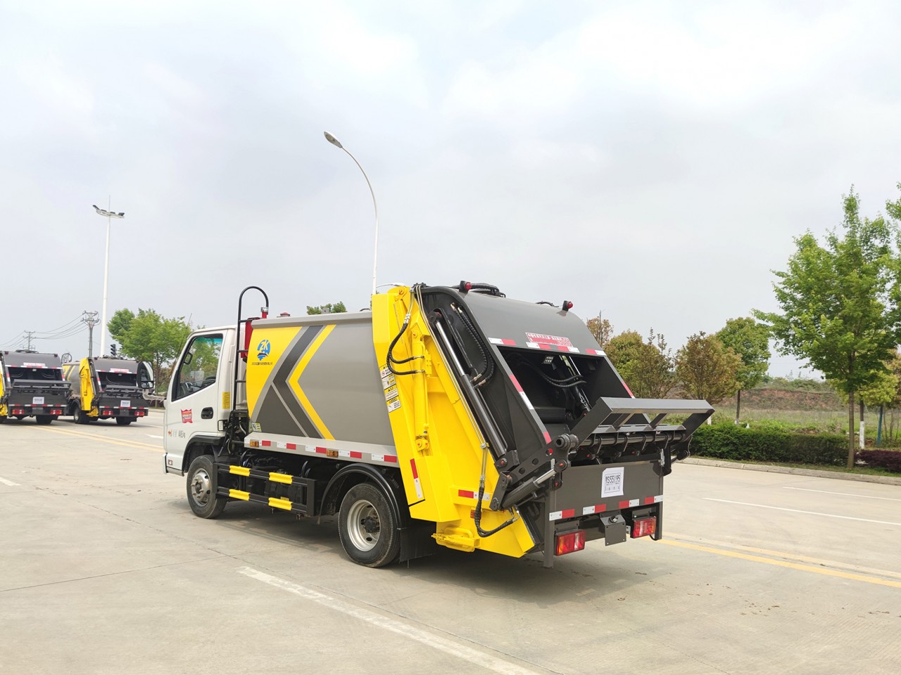 壓縮式垃圾車(chē)由密封式垃圾廂、液壓系統(tǒng)、操作系統(tǒng)組成。整車(chē)為全密封型,自行壓縮、自行傾倒、壓縮過(guò)程中的污水全部進(jìn)入污水廂,較為徹底的解決了垃圾運(yùn)輸過(guò)程中的二次污染的問(wèn)題,避免了給人們帶來(lái)不便,關(guān)鍵部件采用進(jìn)口部件,具有壓力大、密封性好、操作方便、安全等優(yōu)點(diǎn)。 可選配后掛桶翻轉(zhuǎn)機(jī)構(gòu)或垃圾斗翻轉(zhuǎn)機(jī)構(gòu)。