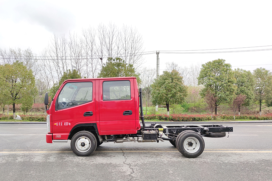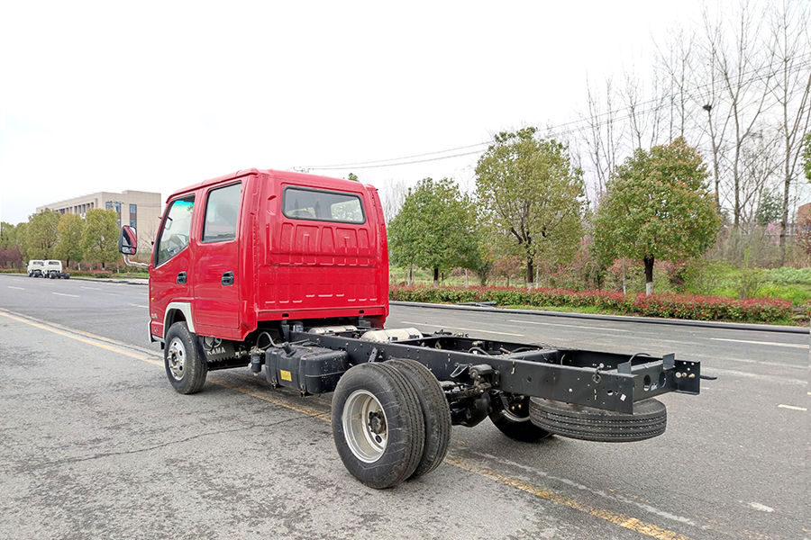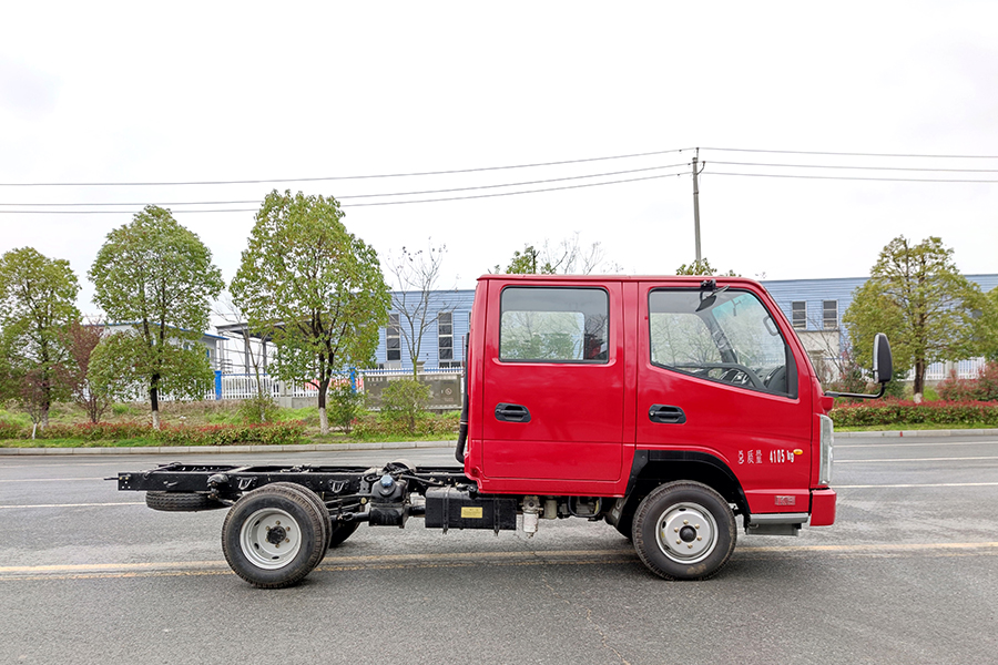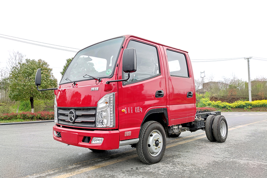 凱馬雙排座救險車專用底盤,2800軸距,底盤型號KMC1040A26S5,新款1580MM雙排消防紅色駕駛室(載員2+3),云內102馬力國五排放發動機,5檔變速箱,160MM直通加寬大梁,6.00-15尼龍胎,1043后橋,油剎,ABS,原廠空調
