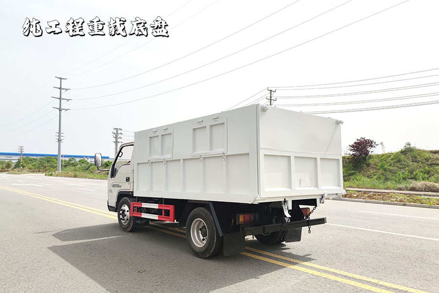 1.該車后卸,車廂頂部封閉不可開啟;主要用于垃圾轉運,主要裝置為廂體和液壓控制系統等專用裝置;側后防護裝置材料均為Q235,側防護連接方式為焊接連接,后部防護連接方式為螺栓連接;后部防護斷面尺寸(mm):100×50,離地高度(mm):480;僅選用2800mm軸距改裝;ABS系統控制方式為4S/4M,ABS型號為CM4XL-4S/4M,生產廠家為廣州瑞立科密汽車電子股份有限公司;發動機Q23-115E60,Q23-115C60對應油耗值均為11.3L/100km;隨底盤選裝駕駛室;該車型已安裝ETC裝置. |