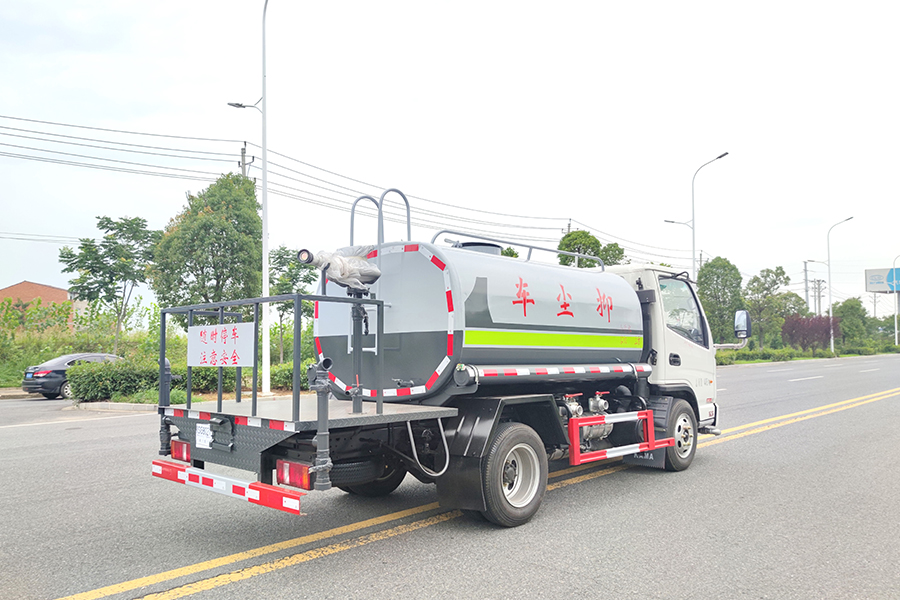 該車主要裝置是水箱和噴霧裝置,用于降低空氣中的灰塵,霧霾等現象,圓形罐體,尺寸2600×1700×1250,公告有效容積3.7方,介質為抑塵劑,選裝后噴霧機組,大工作平臺。
