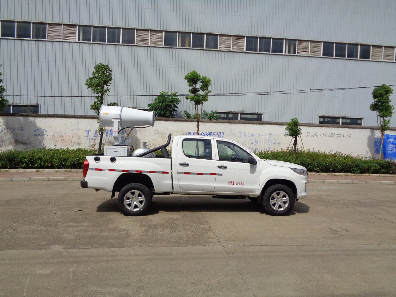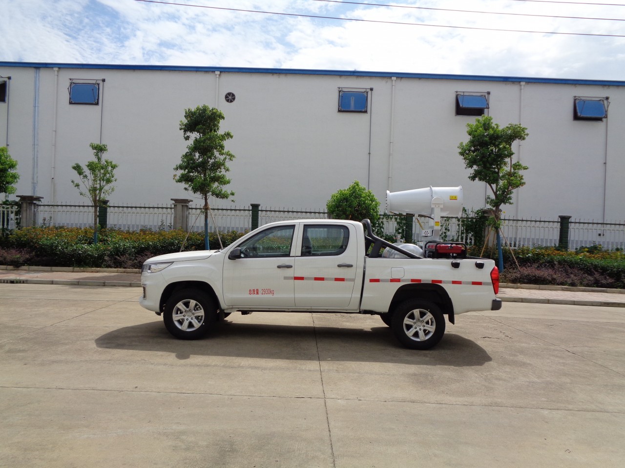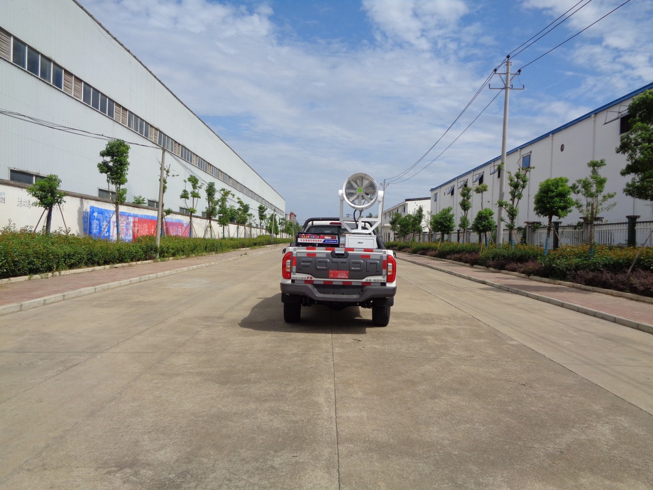 上裝配置:儲液桶總容量為0.32立方米,汽油發電機組,噴霧設備。