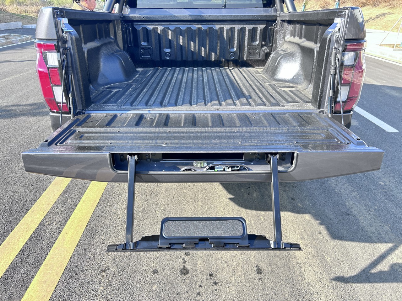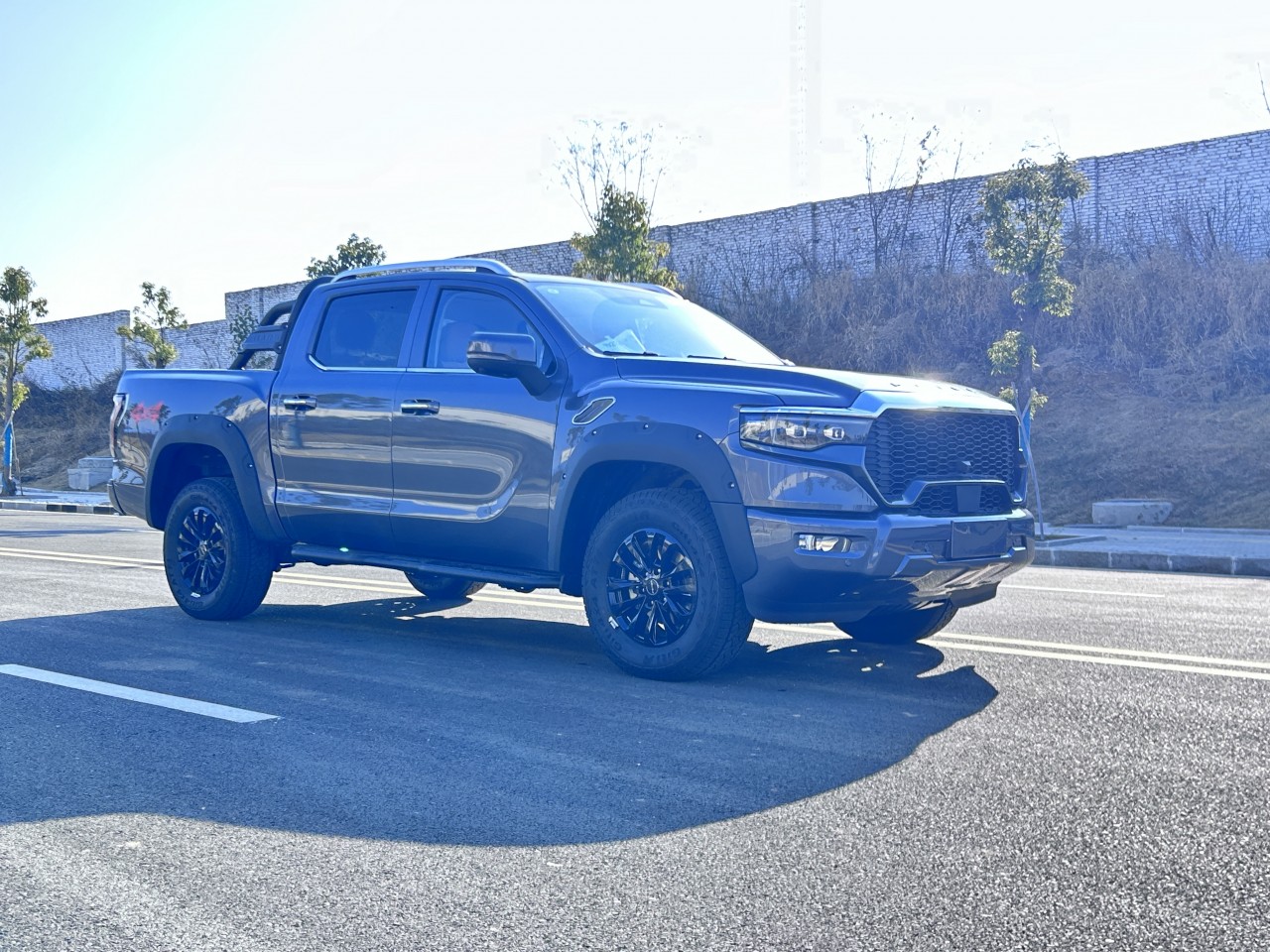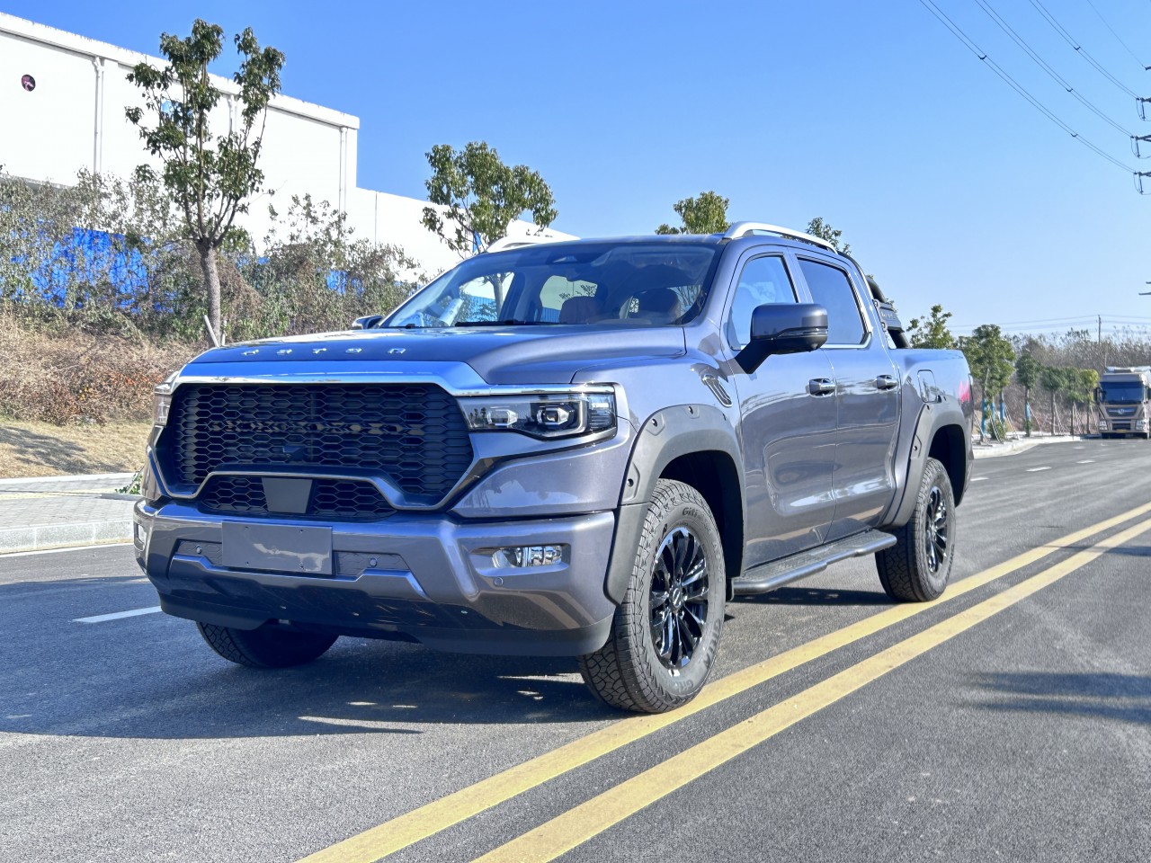 ★全尺寸硬派造型 ① 近2.1m超寬車身、1.65m貨箱、1.7m輪距 ② 整車方正硬朗設計 ③ 帶燈語LED矩陣大燈 ④ 貫穿式帶燈語LED尾燈 ⑤ 3D雕刻尾門裝飾板 ⑥ 大尺寸越野輪眉+車頂行李架 ⑦ 265/70R18大尺寸全地形越野胎 ⑧ 一體式門把手+觸摸感應解鎖 ⑨ 尾門液壓緩降 ⑩ 伸縮式蹬車踏步 ? 主動進氣格柵(行業(yè)首用) ? 多種個性化車身顏色