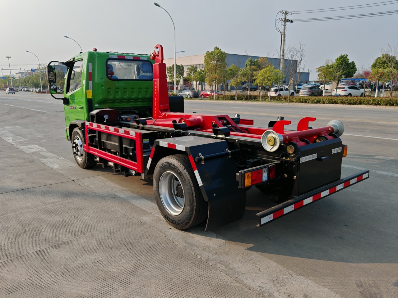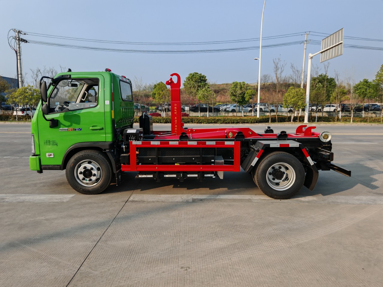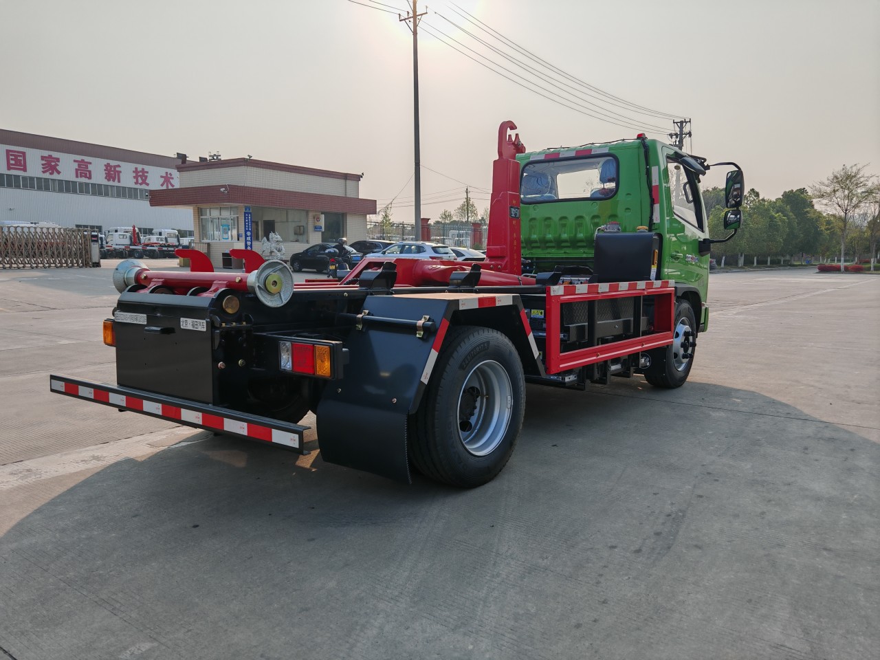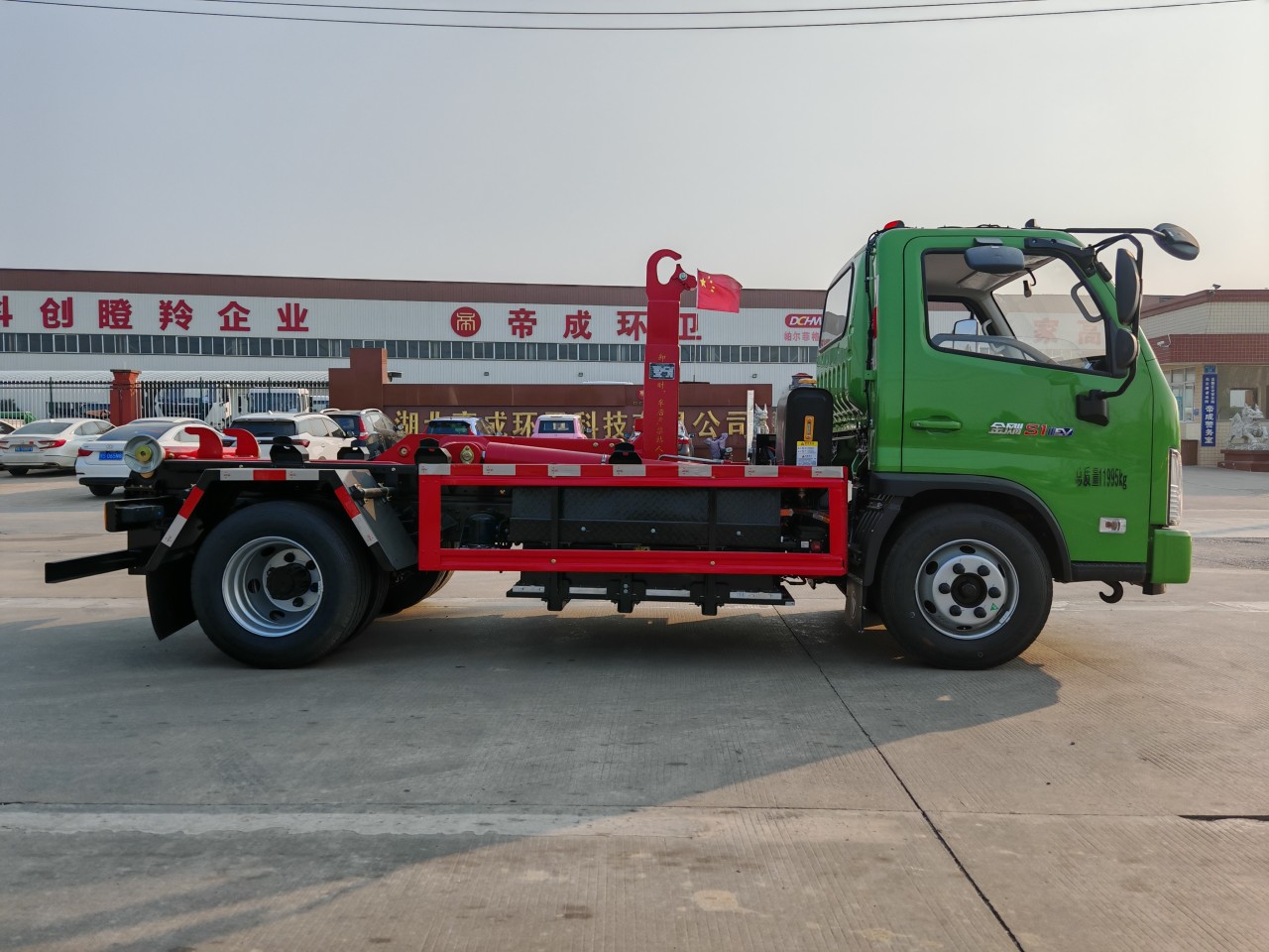 由底架、翻轉架、拉臂鉤和鎖緊機構組成,可完成對密封式垃圾車廂的鉤裝、鉤卸和卸料作業。